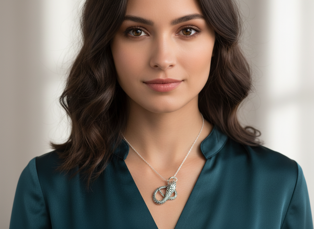 This sterling silver serpent pendant is ideal for those who appreciate symbolic jewelry, minimalist luxury, and bold silver accessories.
