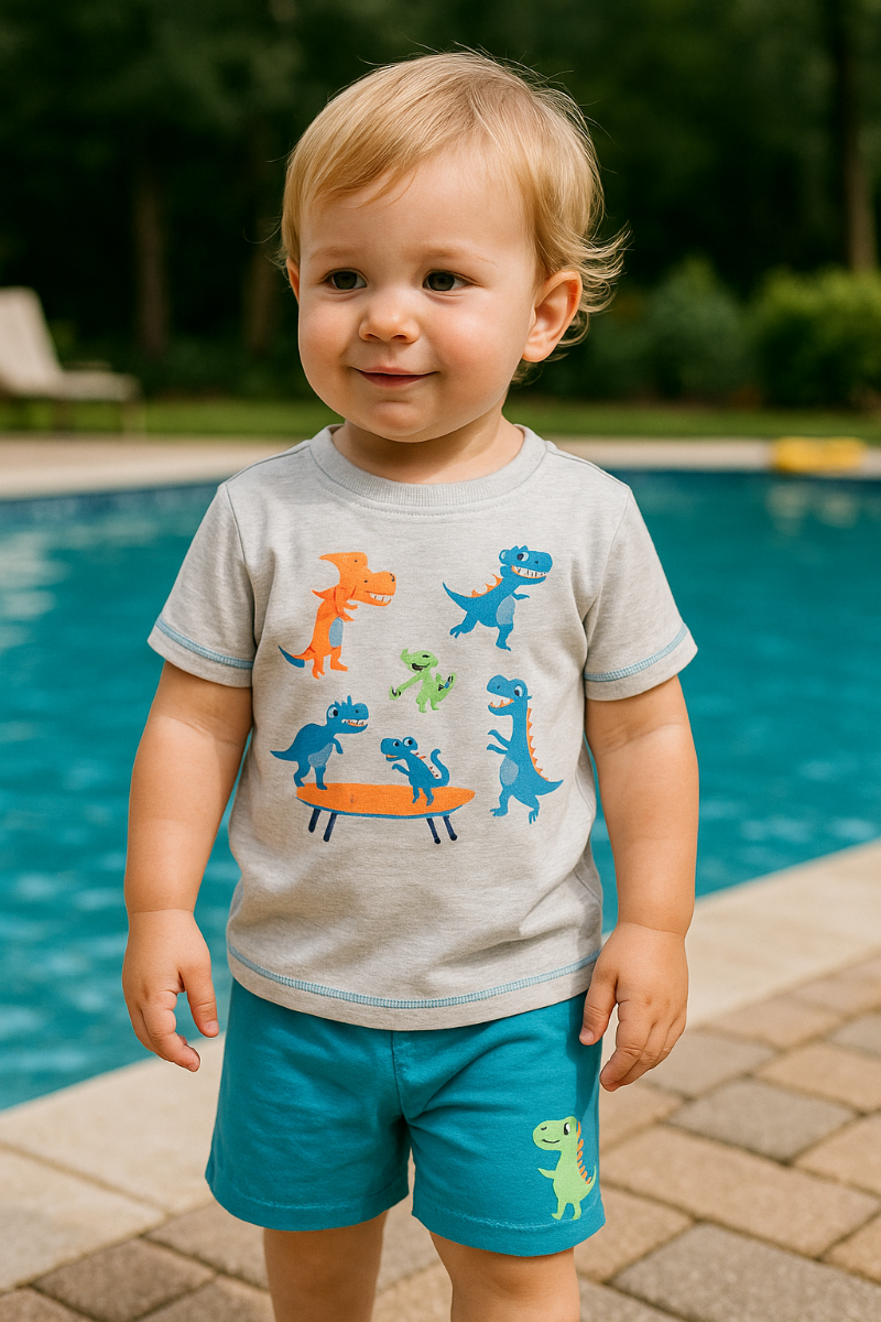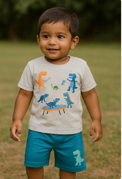 Let your little adventurer roam in style with our boys dinosaur top and shorts set, perfect for summer fun and daily play. Crafted from 100% breathable cotton, this set keeps your toddler cool, comfy, and free to move.