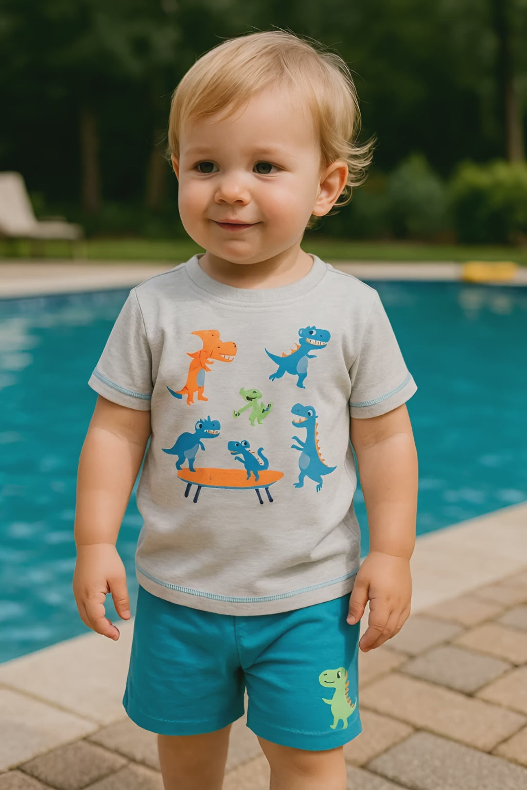 Designed for boys aged 1 to 3 years, it features a vibrant dinosaur print that adds playful charm. Whether it's a day at the park or a backyard adventure, this outfit is both durable and adorable. Proudly made in Turkey, known for quality cotton clothing.