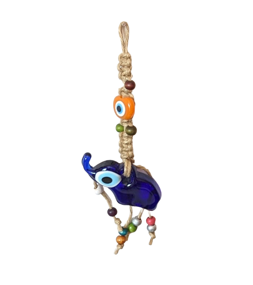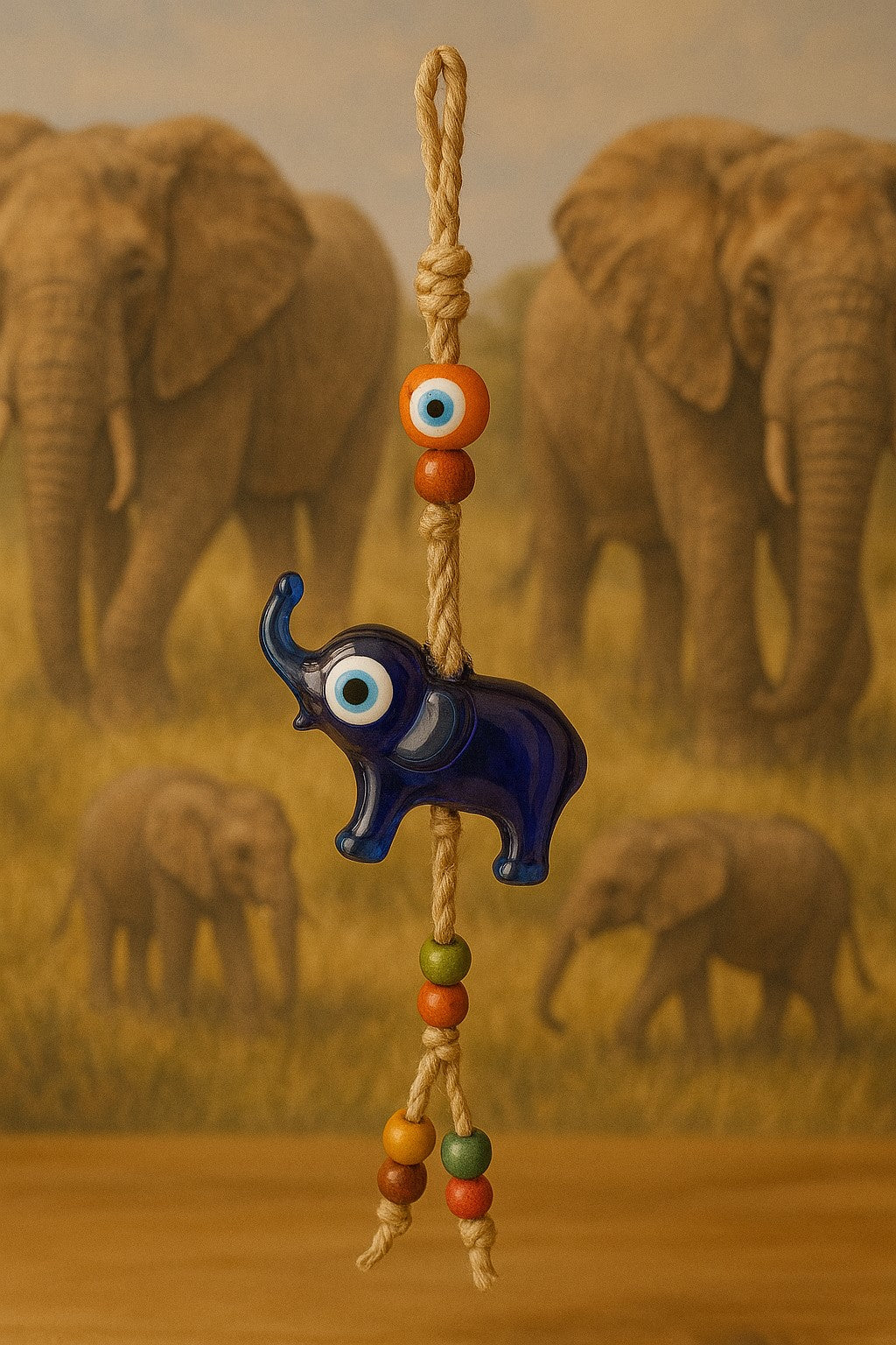 Protect your space with this elegant Evil Eye wall decoration featuring a glass elephant charm, symbolizing wisdom, strength, and good fortune. Handmade in Turkey, this spiritual piece blends cultural tradition with modern décor, helping to ward off negative energy while enhancing your home's ambiance.