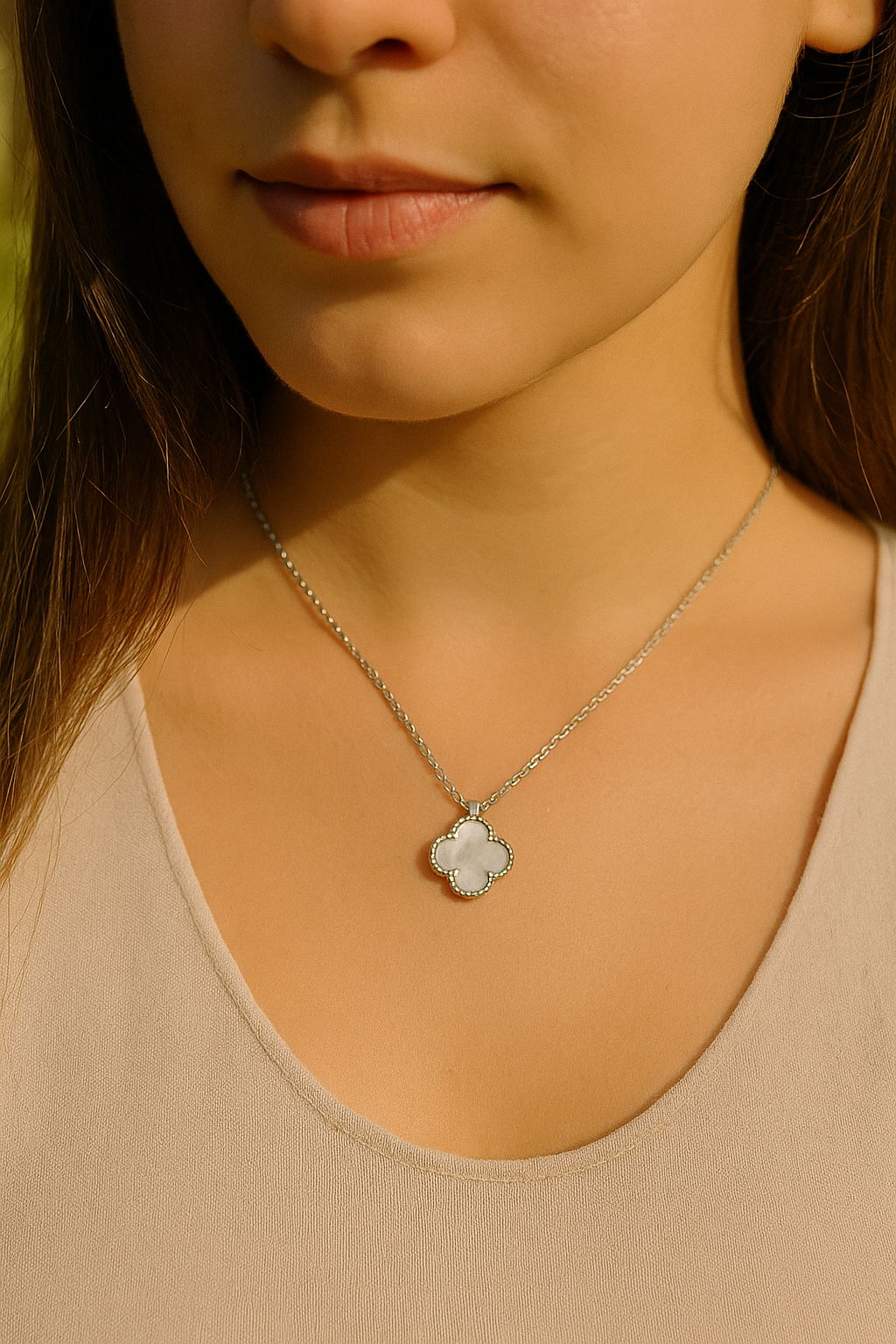 Brighten your look with this elegant 925 sterling silver necklace, featuring a delicate mother or pearl flower pendant encrusted with sparkling zircons. Crafted with care and precision, this piece combines floral charm with timeless design, perfect for everyday elegance or special occasions.