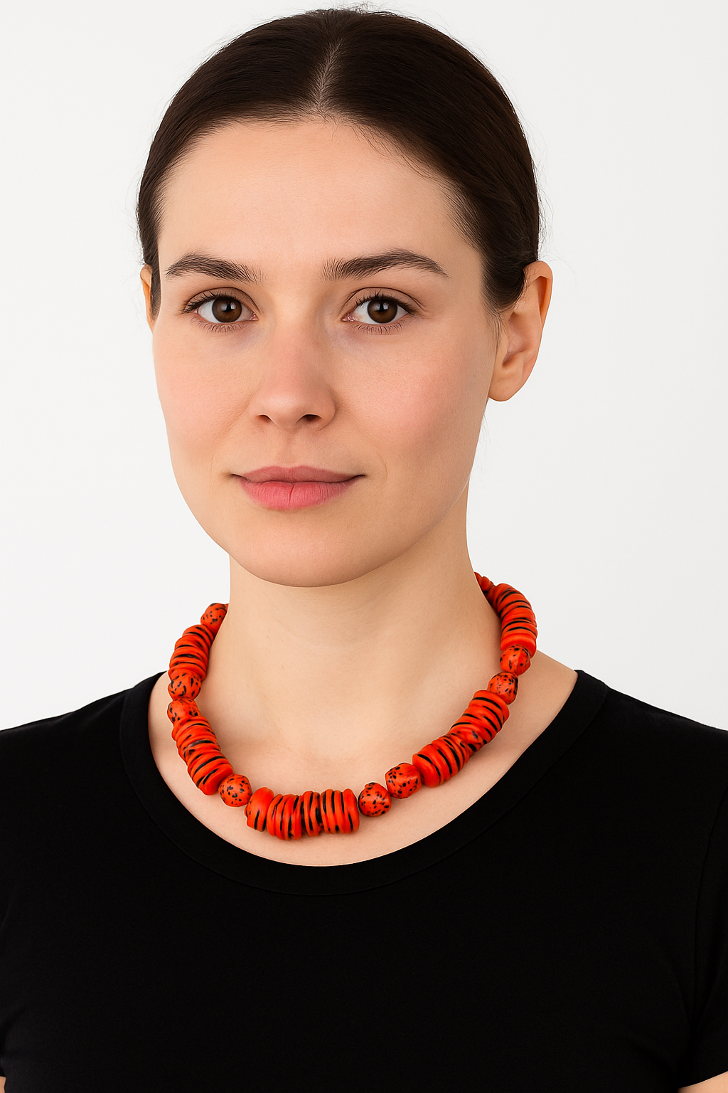 Add a bold, earthy touch to your outfit with the Ohio Tagua Necklace. Handmade in Ecuador, this 20" short necklace features smooth tagua nut slices and natural bombona seeds, colored with organic vegetable dyes. The tagua button closure ensures a secure fit, making this piece both practical and stunning. An ideal option for those seeking eco-friendly jewelry, handmade necklaces, and fair trade accessories.
