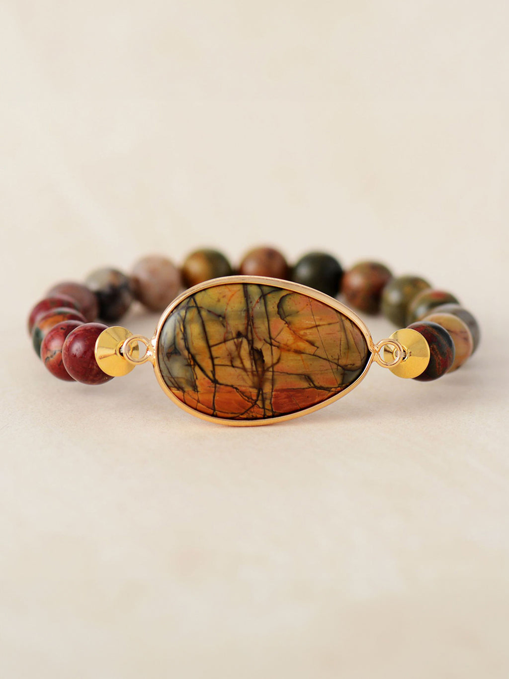 Geometric shapes meet natural stone in this eye-catching beaded bracelet that's as fun to wear as it is to admire. Each bead is thoughtfully arranged to create a modern, playful design that celebrates the beauty of nature's raw materials. Perfect for stacking with other pieces or making a statement on its own, this bracelet brings a touch of artistic flair to any wrist. Handcrafted with care, it's the ideal accessory for those who love bold geometry and earthy elegance.