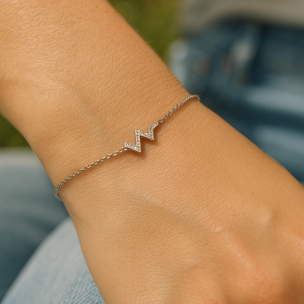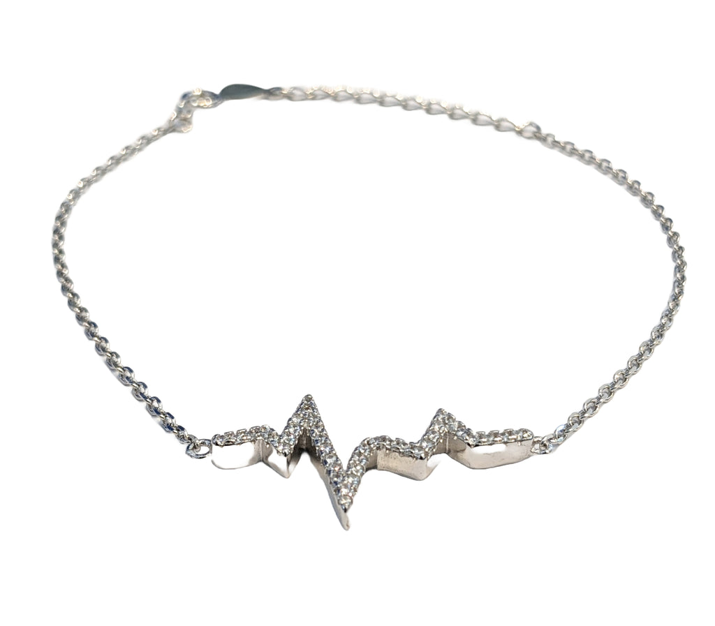Express your inner rhythm with this 925 sterling silver heartbeat bracelet, featuring a beautifully sculpted heartbeat design accented with sparkling zircons. This elegant charm bracelet combines modern sophistication with timeless symbolism, making it perfect for both everyday wear and special occasions.