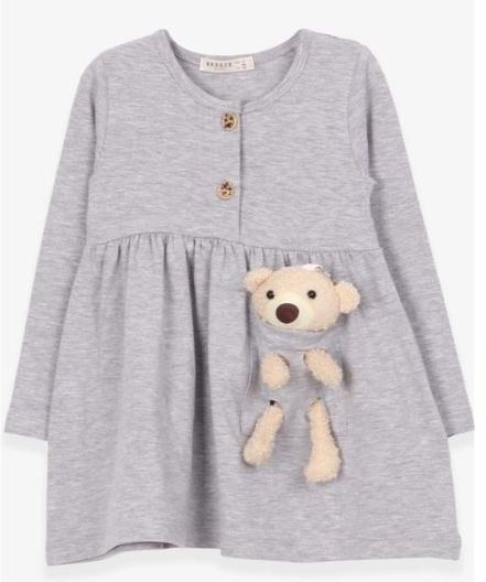 This adorable girls dress with a real teddy bear in the pocket adds a unique twist to classic style! Made in Turkey from a high-quality blend of 90% cotton and 10% Lycra, it ensures softness, stretch, and all-day comfort.
