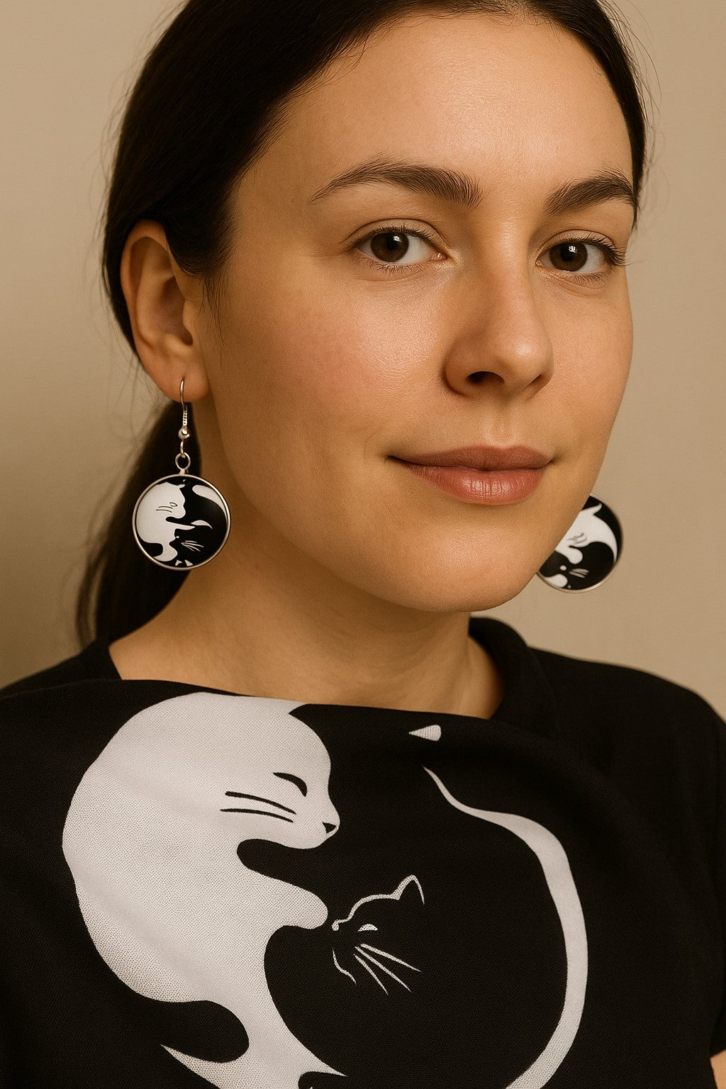These hook earrings are the perfect accessory for any cat lover. The Ying and Yang design signifies balance and harmony, while the glass material adds a touch of elegance. Made with zinc alloy, these earrings are durable and stylish.