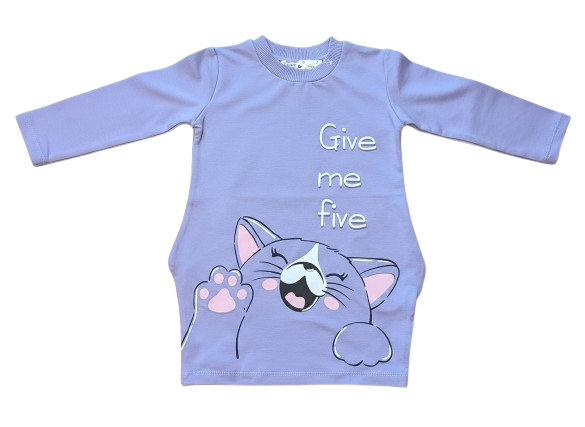 Girls Cotton Dress/Top with Fearless Cat Print