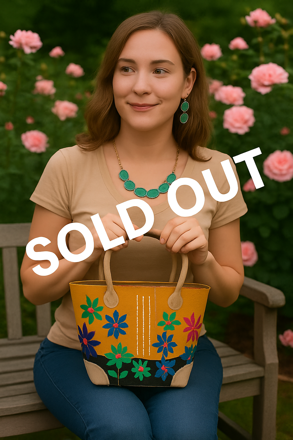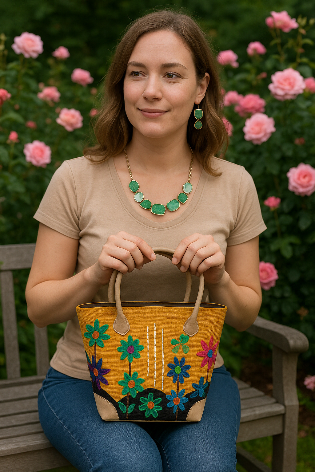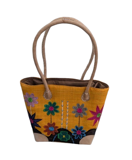 Small Fair Trade Basket| Orange Flowers Handmade Eco Bag